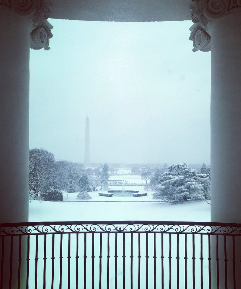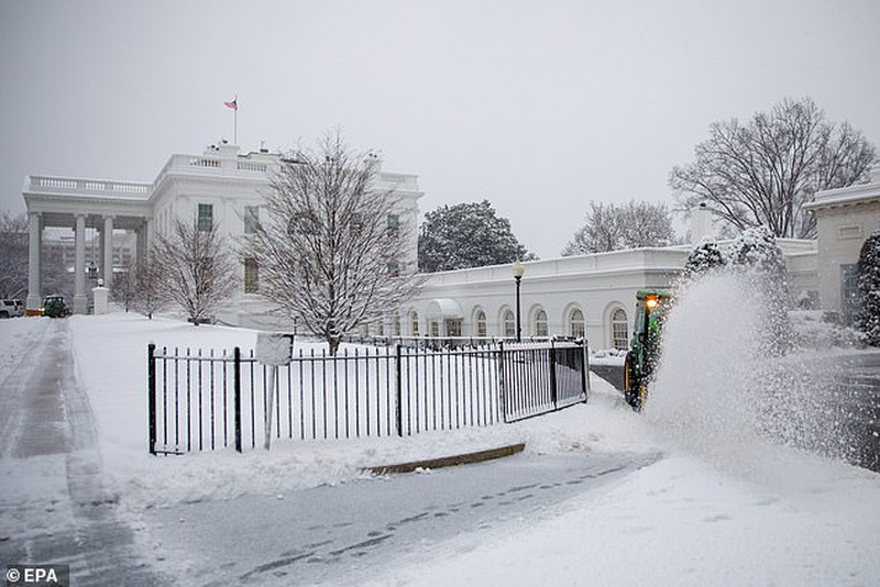 Hình ảnh chụp khung cảnh tuyết phủ dày phía trước cửa Nhà Trắng |