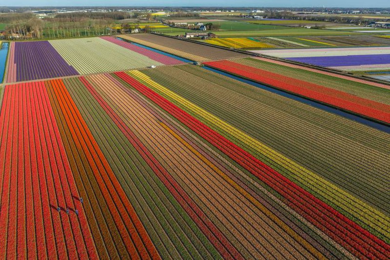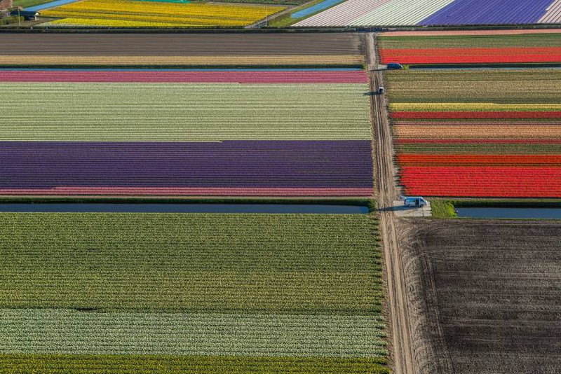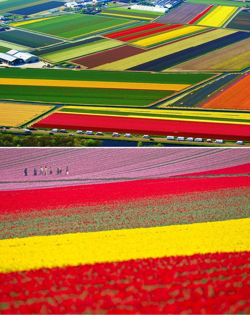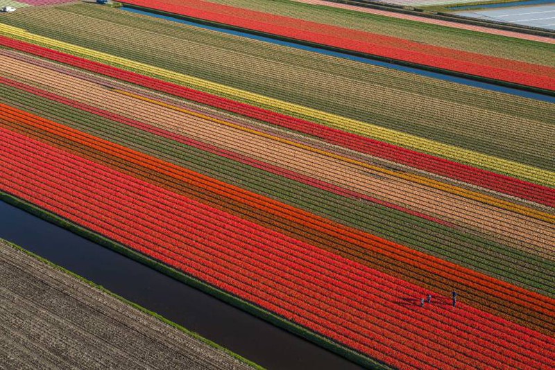 Nhiếp ảnh gia người Mỹ George Steinmetz đã ghi lại vẻ đẹp của Hà Lan vào mùa hoa tulip. Các bức ảnh của ông được chụp từ một chiếc máy bay, đủ cao để những cánh đồng hoa trông giống như những dải lụa, trải dài trên mặt đất.