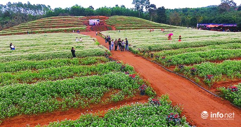 “Hoa tam giác mạch dự kiến nở hết tháng 1/2018, đến tham quan, du khách không chỉ được chiêm ngưỡng vẻ đẹp của hoa mà còn được tham quan các gian hàng trưng bày, bán các sản phẩm đặc trưng của huyện Nghĩa Đàn như cam, bưởi, ổi, táo… và được mượn trang phục đồng bào dân tộc nơi đây để chụp ảnh lưu niệm” - anh Định chia sẻ thêm. |