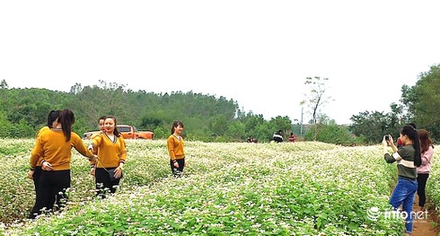 Anh Lê Hoàng Linh (một du khách đến từ TP Vinh) cho biết, thấy các bạn của mình đi du lịch chụp ảnh hoa tam giác mạch ở Hà Giang rất đẹp, nên mình rất thích. Nay ở Nghĩa Đàn đã có loài hoa này nên mình và các bạn cùng lớp tranh thủ ngày nghỉ lên tận nơi để tham quan, chụp ảnh”. |