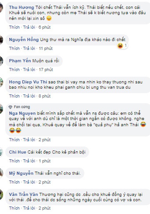 Ngọc Quỳnh mắng fan khi chia buồn vì Thái 'Hoa hồng trên ngực trái' sắp chết