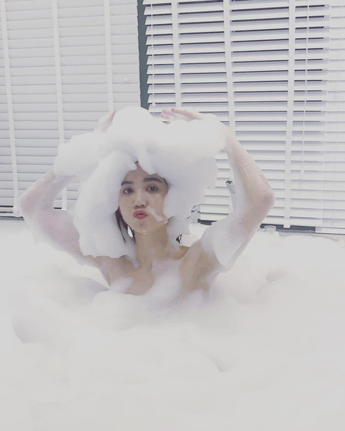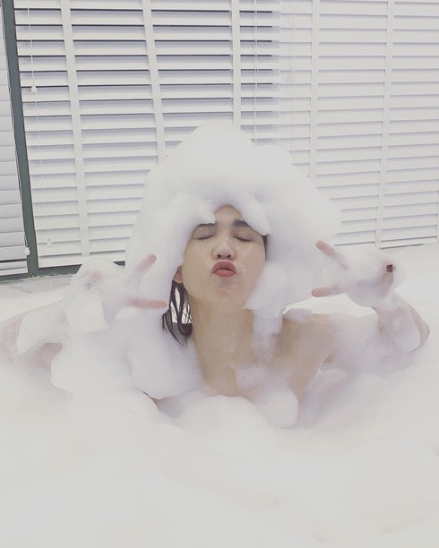 Đáp trả những chỉ trích này, Ngọc Trinh vừa mới đăng đàn loạt khoảnh khắc ngâm mình trong bồn tắm tại biệt thự riêng. Giữa bồng bềnh bọt xà phòng, "nữ hoàng nội y" thay vì khoe thân như mọi khi, cô nàng tạo dáng và biểu cảm đáng yêu đến lạ kỳ. Ngọc Trinh cũng không quên làm thơ: "Ăn trầu thì phải có vôi/Muốn soi người khác phải coi lại mình...".