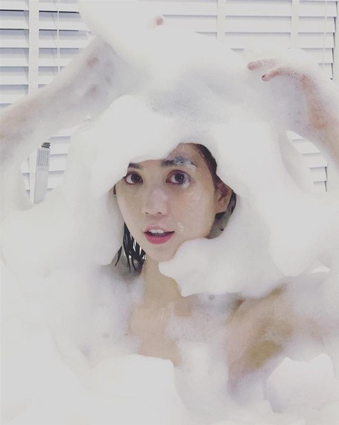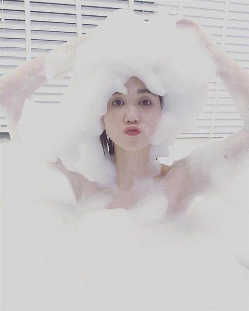 Người đẹp 31 tuổi khoe vai trần nõn nà giữa lớp bọt mong manh. |