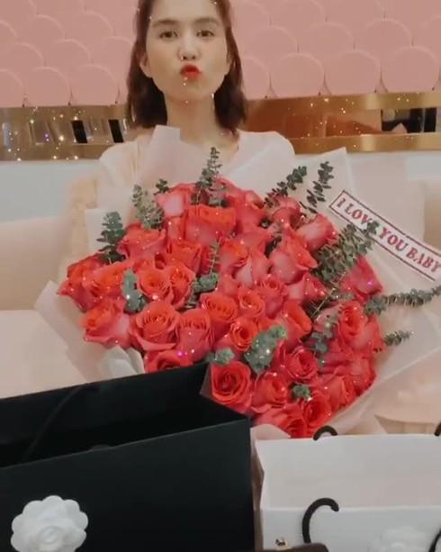 Nhận được loạt quà giá trị, Ngọc Trinh hạnh phúc bày tỏ: "Hoa rất đẹp, quà rất ưng. Cảm ơn nhóc".