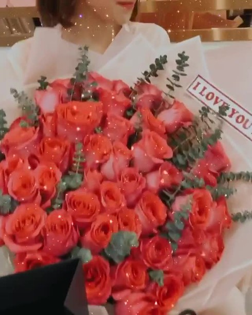 Quà Valentine của Ngọc Trinh là bó hoa hồng "siêu to khổng lồ", ngang ngửa thân hình người đẹp. |