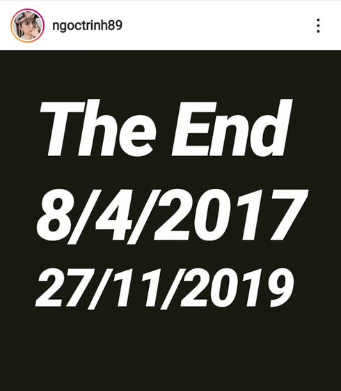 Mới đây, trên Instagram cá nhân, Ngọc Trinh vừa đăng tải dòng trạng thái với nội dung: "The End, 8/4/2017-27/11/2019". Các fan cho rằng Ngọc Trinh đang ẩn ý việc đã chia tay người yêu sau 2 năm mặn nồng. Đây là thông tin khá bất ngờ với người hâm mộ bởi Ngọc Trinh mới vừa đón sinh nhật ngọt ngào bên bạn trai cách đây không lâu.