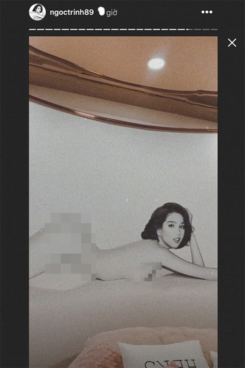 Nếu khán giả thường xuyên theo dõi trang cá nhân Ngọc Trinh sẽ nhận thấy hình ảnh nude 100% này đã được cô nàng treo trong phòng ngủ tại biệt thự triệu đô mới dọn về hôm Tết Nguyên Đán vừa qua. Với bộ ảnh này, chắc chắn khán giả sẽ "mất máu" vì độ gợi cảm, quyến rũ chết người của người đẹp sinh năm 1989.