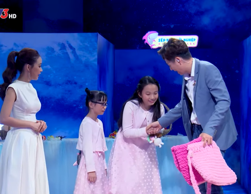 Trong tập 3 "Sếp nhí khởi nghiệp", phần gọi vốn của cặp chị em mở hàng handmade đã khiến giàn cố vấn vô cùng thích thú. Trước những chiếc túi màu hồng đáng yêu này, Sam đã tỏ ra phấn khích và ao ước được sở hữu nó. Ngay sau đó, Ngô Kiến Huy đã ra mặt, bỏ tiền túi của mình mua một loạt túi màu hồng của cặp chị em này để tặng Sam. Hành động của chàng Bắp khiến nữ MC ngạc nhiên và cảm động. |
