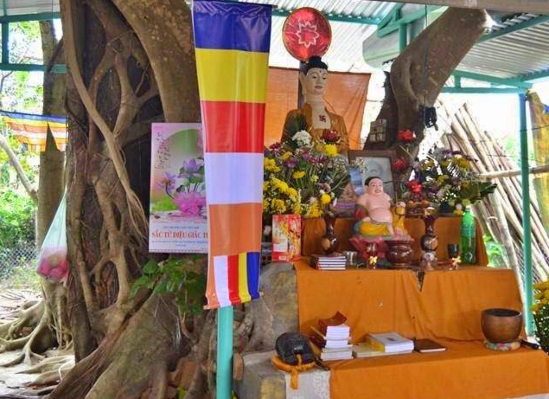 Sau đó, ông Thắng đứng ra xin phép chính quyền địa phương để hoạt động tôn giáo tại nơi có tượng Phật được cây bồ đề che chở. Được chính quyền đồng ý, ông tu bổ khu vực này với mái che bằng tôn, khung thép bao quanh cội bồ đề.