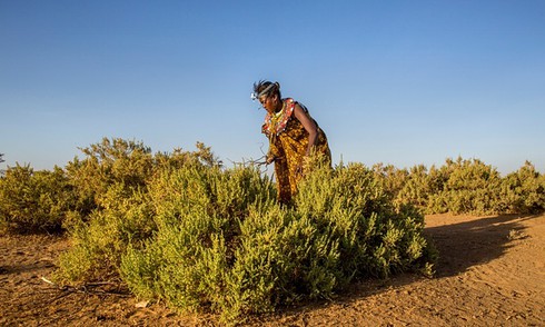 Grabriella, 24 tuổi, đang nhặt củi. |