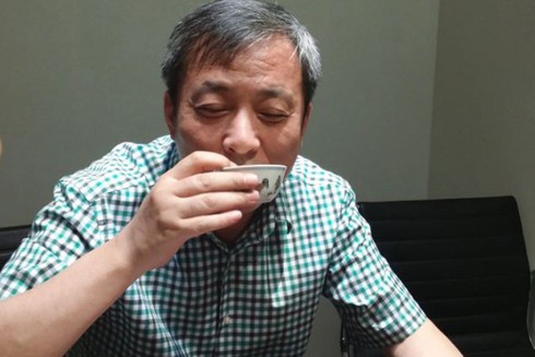Tỷ phú đầu tư Lưu Ích Khiêm đang dùng cốc quý để uống rượu. |