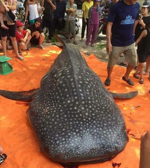 Theo người chia sẻ thông tin trên mạng xã hội Facebook cho biết, con cá bị xẻ thịt là cá mập voi (nhám voi), một trong những loài cá quý hiếm và sự việc thịt cá diễn ra tại Sầm Sơn.