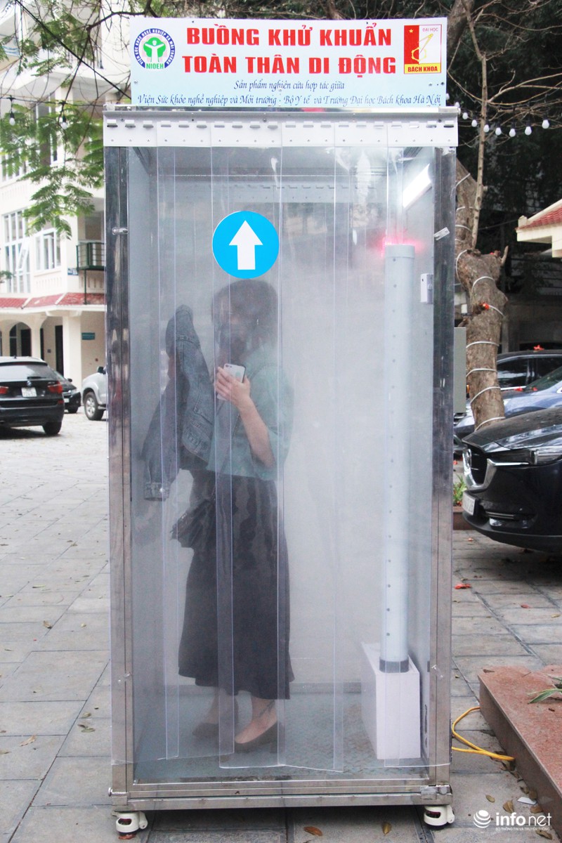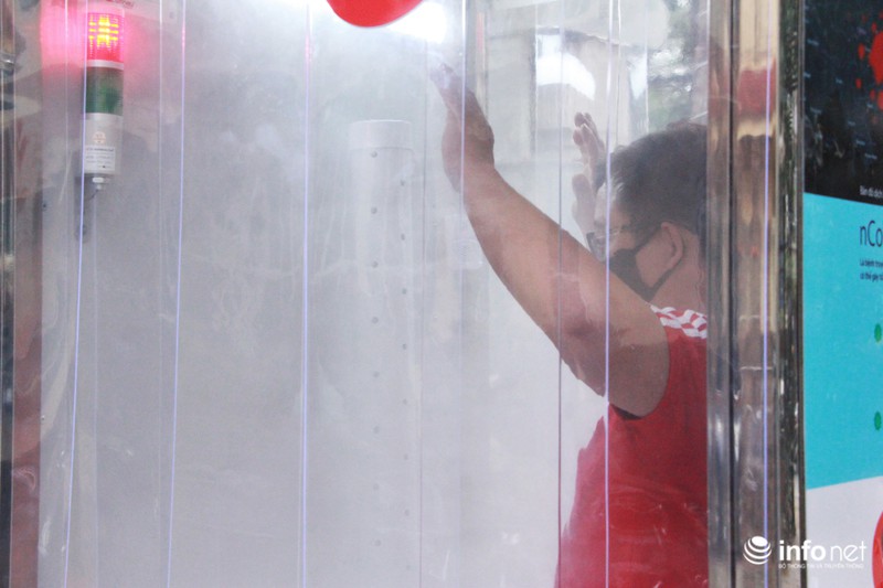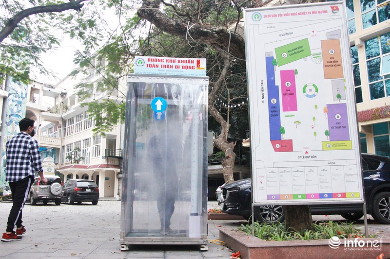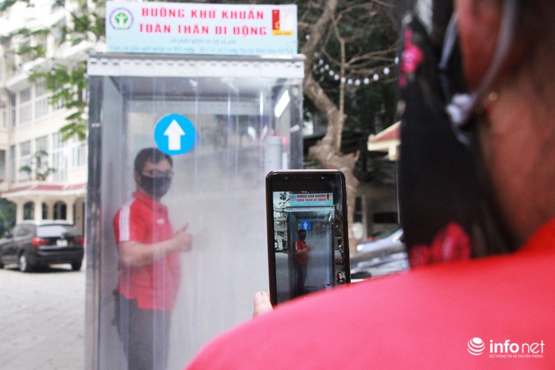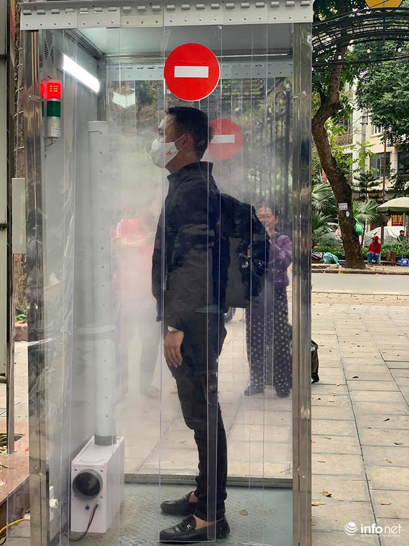 Người dân chỉ cần mất 15- 20s khi bước vào buồng khử khuẩn này để diệt khuẩn toàn thân trước khi đi vào khu vực phòng khám.