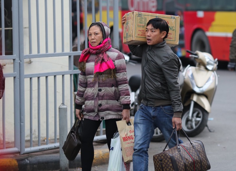 Do nghỉ Tết Dương lịch dài tới 4 ngày nên khi quay trở lại Hà Nội, người dân mang theo khá nhiều thực phẩm. |