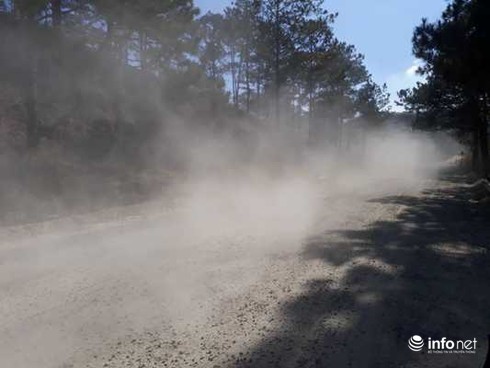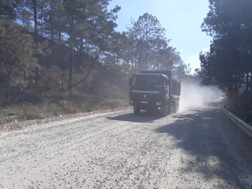 Theo nhiều hộ dân và du khách phản ánh, nguyên nhân là do đơn vị thi công rải thêm lớp đất, đá trên mặt đường nhưng không có biện pháp khử bụi (phun nước lên bề mặt) để hạn chế bụi bẩn, khiến tuyến đường thường xuyên mịt mù.