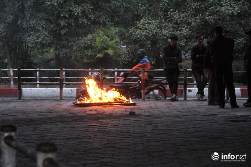 Riêng 2 ngày cuối tuần (22-23/12), rất nhiều điểm từ bán hàng ngoài trời, người lao động đã phải nhóm lửa chống rét ngay trên vỉa hè. |