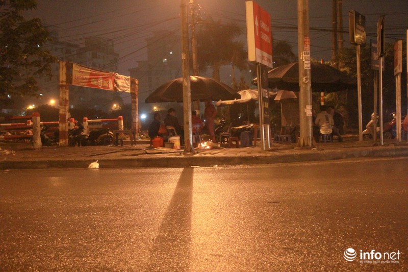 Trênđường Khuất Duy Tiến, các chủ quán ăn đêm cũng đều nhóm những đống lửa cạnh hàng quán của mình, cho mọi người bớt cảm giác lạnh của gió mùa. |