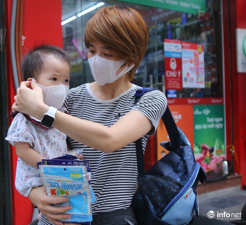 Chị Nguyễn Mai Linh (phố Cửa Bắc, Hà Nội) cho biết: "Những ngày qua khi theo dõi các phương tiện thông tin báo đài được biết chất lượng không khí tại Hà Nội rất ô nhiễm. Trong khi con tôi cũng đang bị viêm phổi. Nên tôi đã ra hiệu thuốc mua khẩu trang cho cả gia đình, để mọi người sử dụng khi ra đường". |
