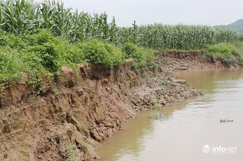 Nhiều héc ta ruộng, hoa màu của người dân hai bờ sông Đông Mai bị "nuốt trôi" |