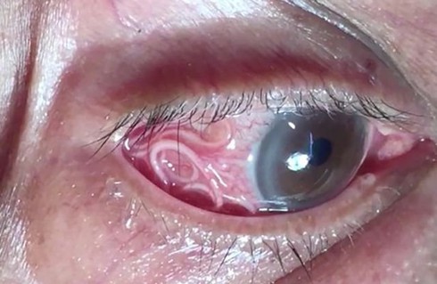 Giun chó mèo tấn công lên mắt. |