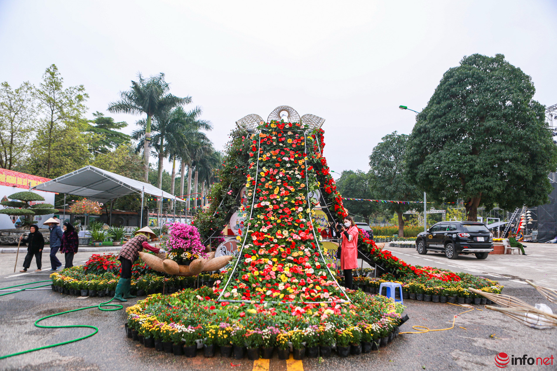 Con đường trái tim từ hoa hồng, thác hoa cao 4m xuất hiện tại lễ hội hoa Mê Linh
