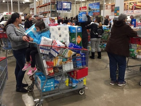 Trên các xe đẩy khi mua sắm không thiếu giấy vệ sinh mà khách mua về tích trữ. |
