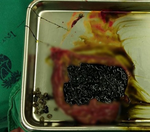 Túi mật của người đàn ông được lấp đầy bởi vô số hạt sỏi đen trông giống như những viên trân châu trà sữa. |