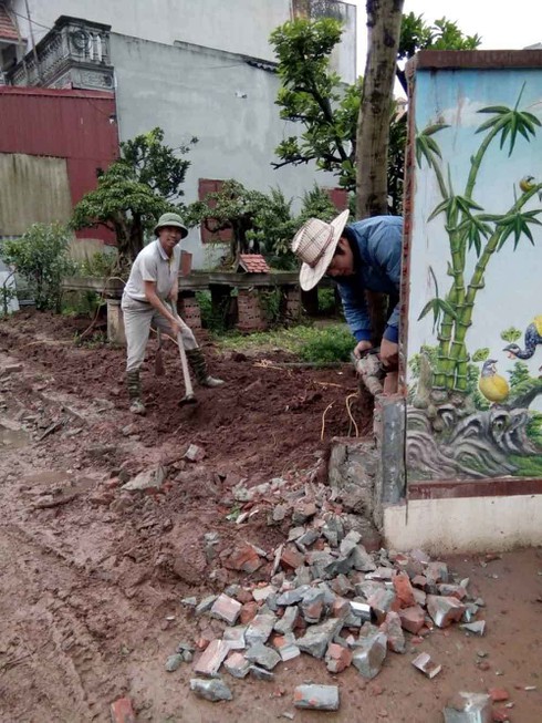 Với những gia đình sau khi phá tường, hàng rào, ông Hải phải huy động người xây trả lại cho người dân ngay để tránh nguy cơ mất cắp tài sản trong nhà.