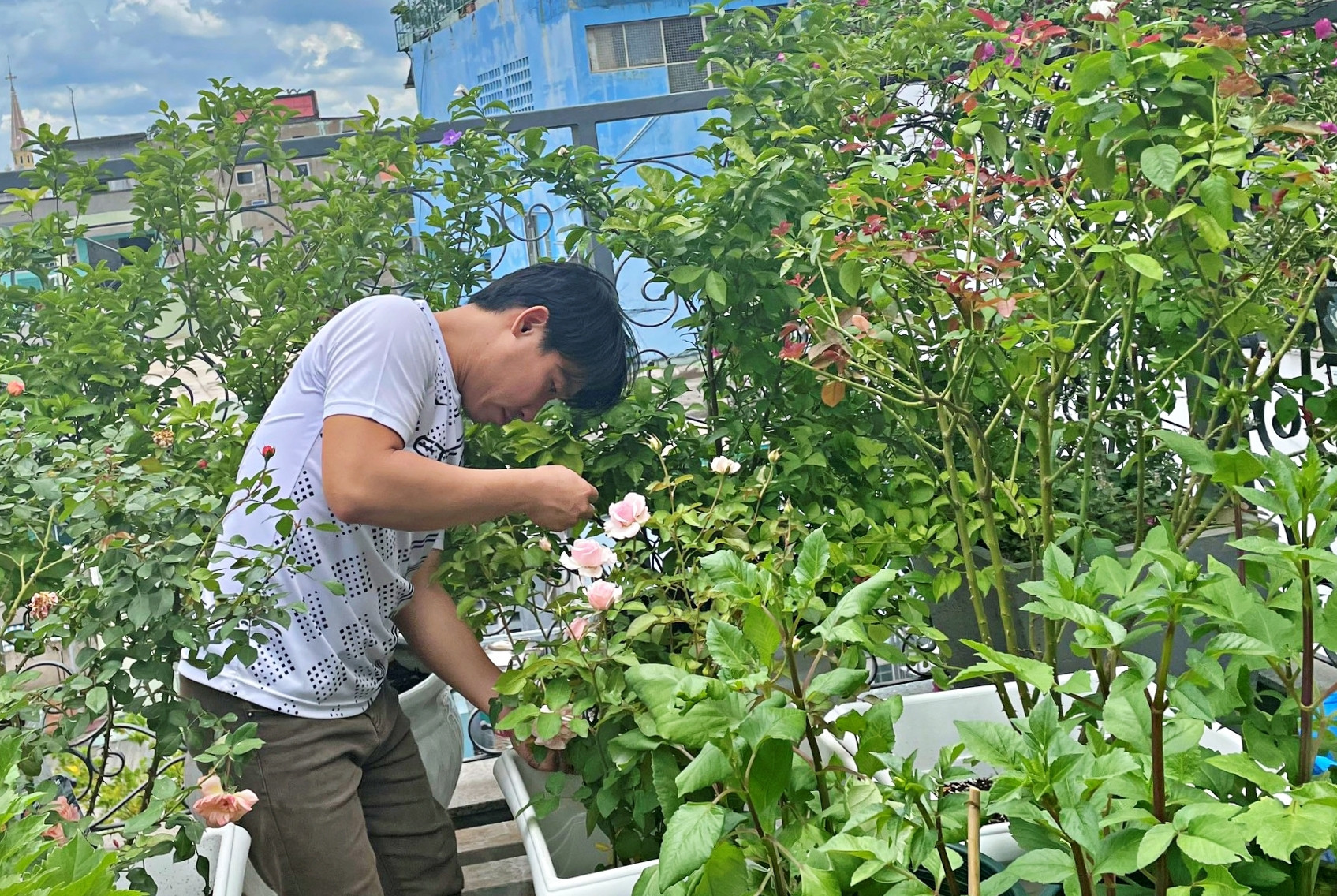 Người đàn ông phủ kín sân thượng bằng vườn hoa hồng rực rỡ sắc hương