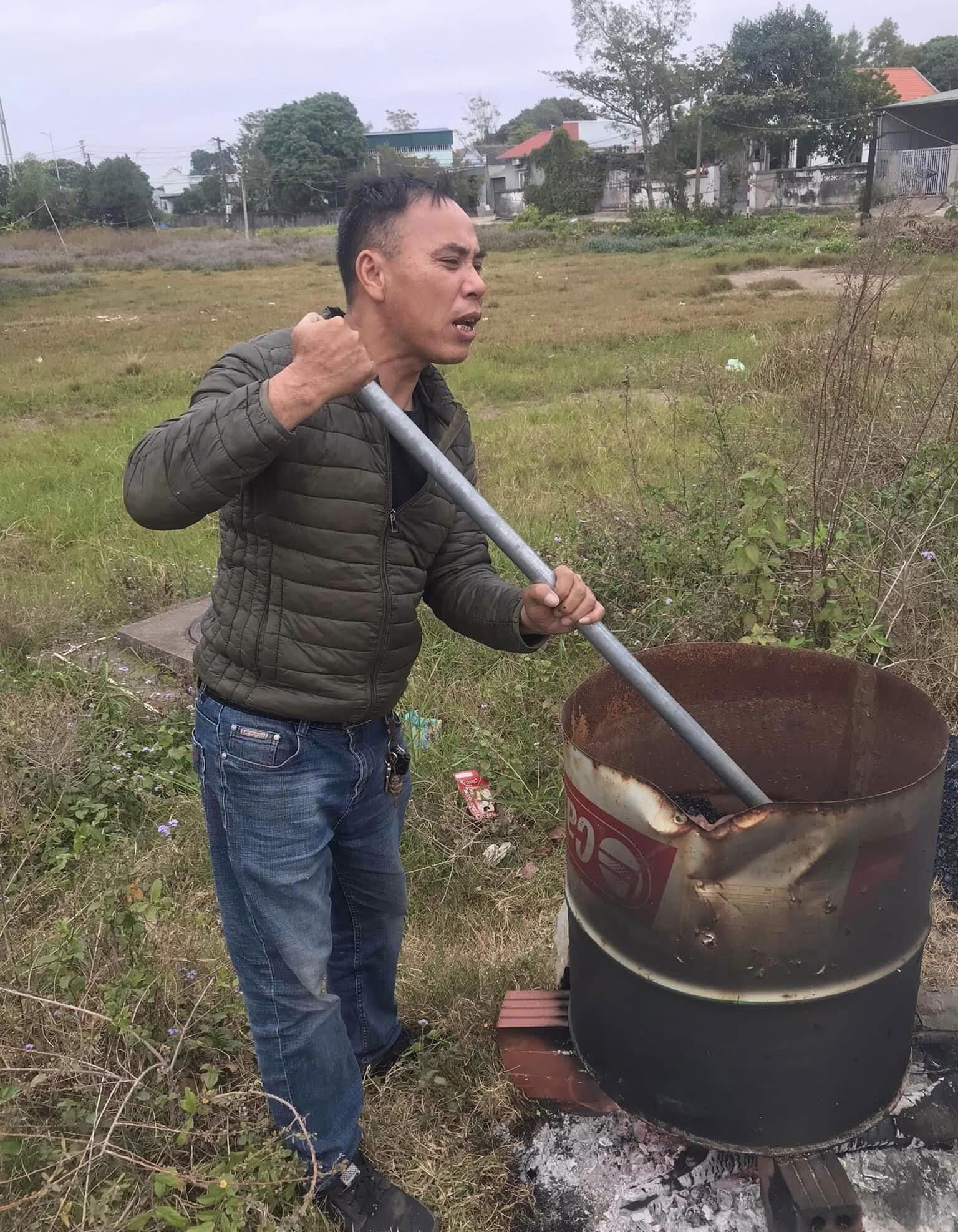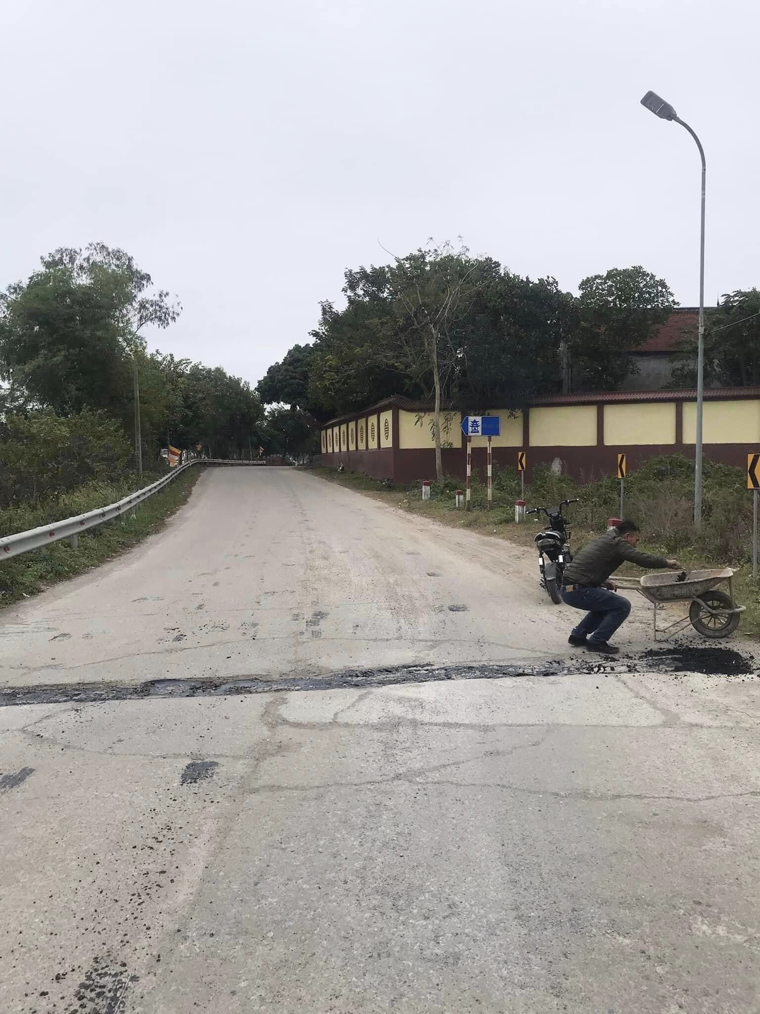 Khi biết tuyến đường cao tốc Hà Nội - Móng Cái hoàn thành, có nhiều nơi công nhân bỏ lại nhựa đường, đá sỏi thừa... anh Vượng đã tự mình đi thu gom. Chiều 3/1, anh trở thành một "công nhân cầu đường" vá lại đoạn đường hỏng trước cửa nhà mình.