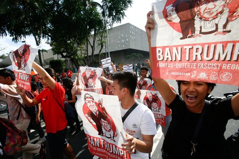 Mang theo mình những biểu ngữ như “Dump Trump (Hãy từ bỏ Trump)” hay “Đả đảo Chủ nghĩa Đế quốc Mỹ”, nhiều người đã tập trung gần Đại sứ quán Mỹ tại Philippines để bày tỏ quan điểm của mình. Đám đông này đã bị cảnh sát chống bạo động dùng khiên và gậy, cũng như vòi phun nước trấn áp.
