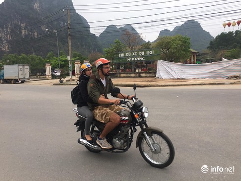 Khách du lịch thuê xe máy đi tham quan các thắng cảnh ở Phong Nha. |