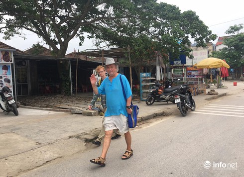 Khách du lịch nước ngoài đi dạo ở thị trấn Phong Nha. |