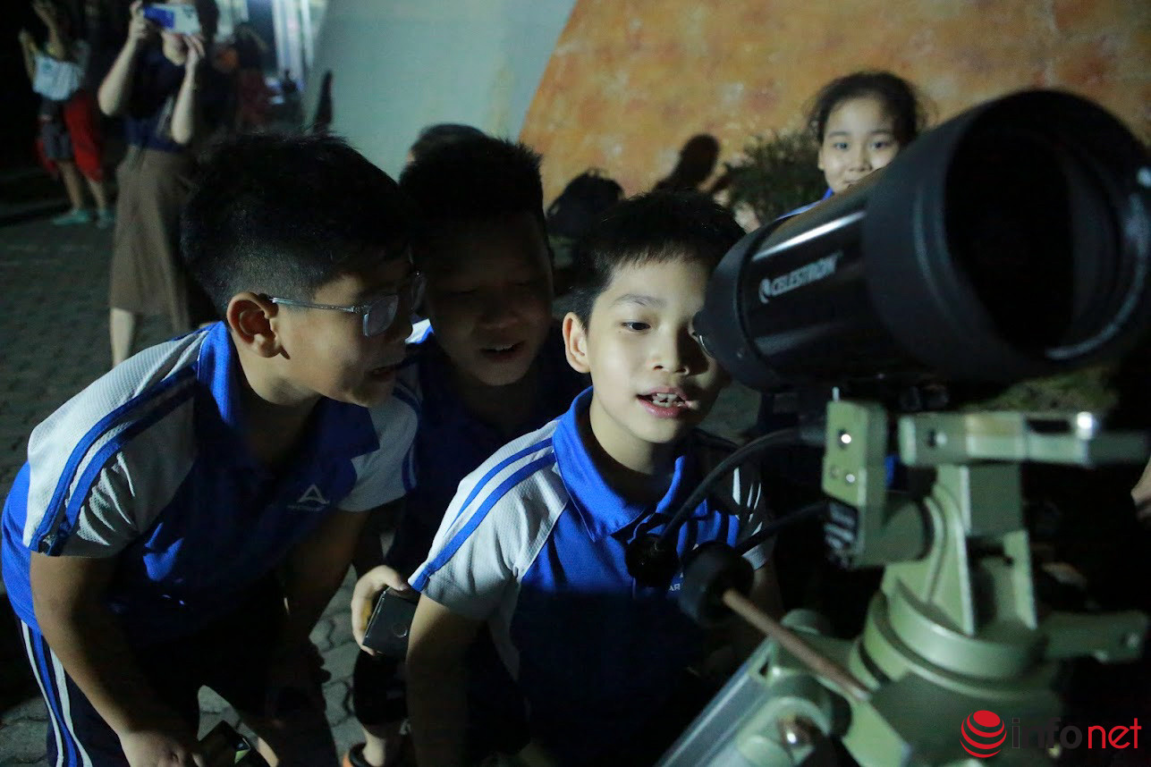 Tối qua (8/11), tại Hoà Lạc (huyện Thạch Thất, Hà Nội), những người yêu thiên văn tập trung tại Đài thiên văn Hòa Lạc để ngắm hiện tượng nguyệt thực qua thiết bị chuyên dụng.