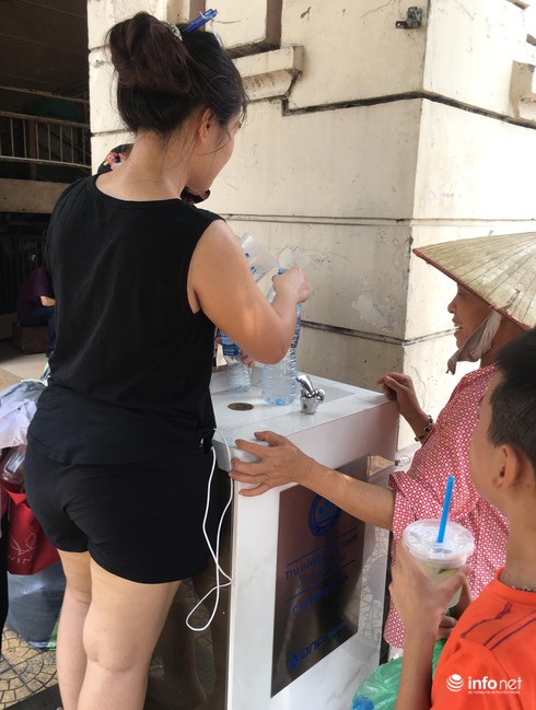 Theo ghi nhận của PV Infonet, tại khu vực đặt trụ nước trước cổng chợ Đồng Xuân nhiều người dân và khách du lịch rất hào hứng với các trụ nước này. Thậm chí, có nhiều người dân mang cả 5, 6 chai nhựa 1,5 lít ra lấy sạch mang về.