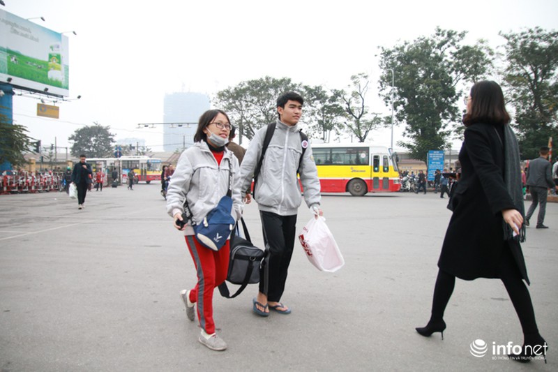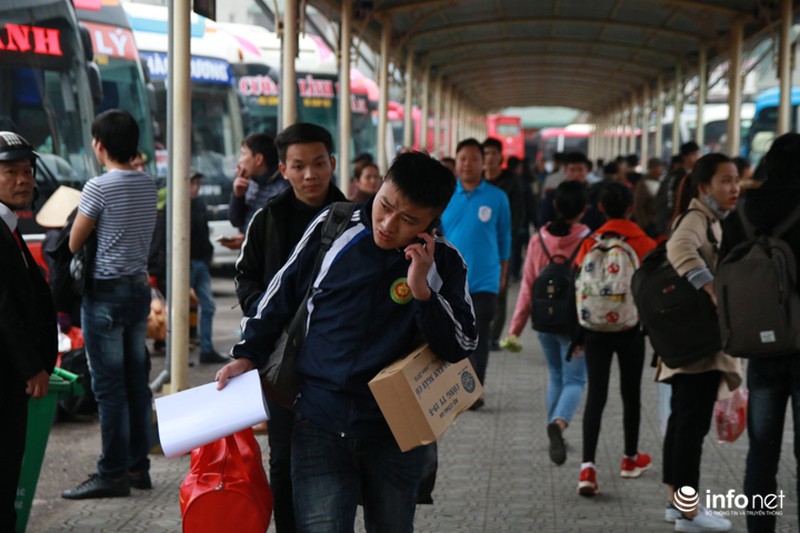 Ghi nhận tại bến xe Giáp Bát lúc 17h chiều 29/12, lượng người đổ về ngày một đông. |