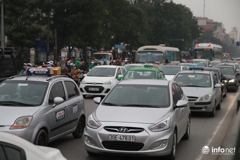 Tuy đã được khuyến cáo nhưng nhiều xe vẫn lợi dụng lúc đường ùn tắc để đón khách dọc đường. |