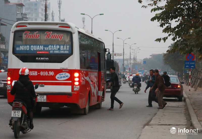 Lo lắng về việc phải chen lấn và chờ đợi rất lâu khi vào bến mua vé, nhiều hành khách vẫn lựa chọn đứng dọc đường để bắt xe cho nhanh. |