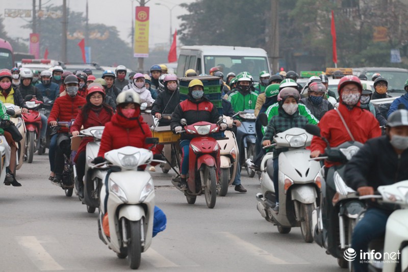 Với những địa phương gần Hà Nội, người dân lựa chọn phương tiện di chuyển là xe máy để thuận tiện, cơ động. |