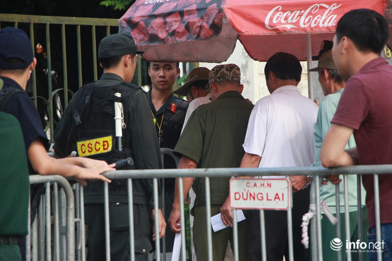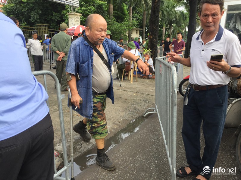 Số lượng người trong "trang phục" thương binh kéo đến trụ sở VFF càng ngày càng đông, lực lượng chức năng phải cho từng người đi vào theo hàng rào chắn.