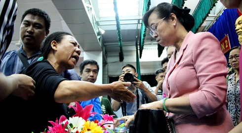 Người dân Thủ Thiêm bày tỏ ý kiến với bà Nguyễn Thị Quyết Tâm. |