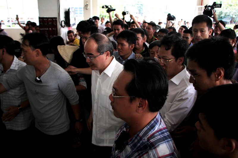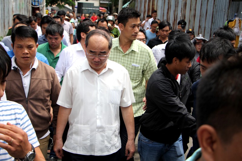 Chuyến thăm của ông Nguyễn Thiện Nhân khiến cả khu vực náo loạn, hàng chục cảnh sát được huy động để đảm bảo an ninh và duy trì trật tự. Một người đã bị đưa khỏi đây vì không chấp hành yêu cầu của lực lượng an ninh. |