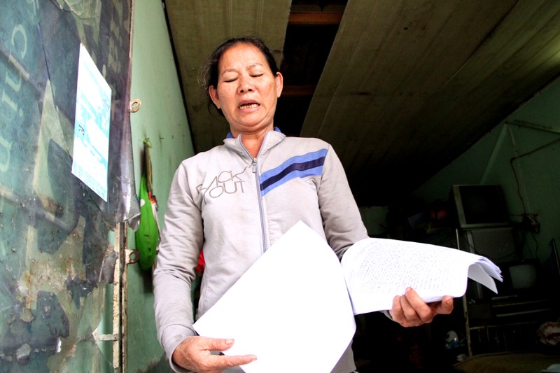 Bà Lê Thị Thảo đưa ra các giấy tờ về diện tích đất bà từng sở hữu. Hiện bà đang duy trì cuộc sống bằng nghề nhặt ve chai. |