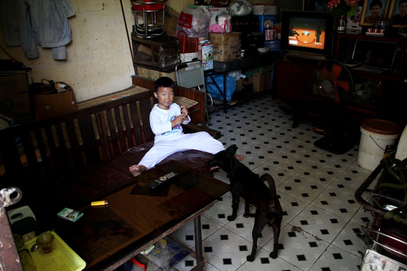 Rời khỏi khu tái định cư, ông Nguyễn Thiện Nhân cùng đoàn công tác chuyển sang khu tạm cư. Nơi này gồm nhiều dãy nhà dựng tạm bằng khung thép, là nơi ở của những người kiên quyết không chuyển lên khu tái định cư. Các căn phòng tại đây có diện tích khá chật chội và tối tăm, chỉ đủ chỗ cho một gia đình nhỏ sinh sống. |