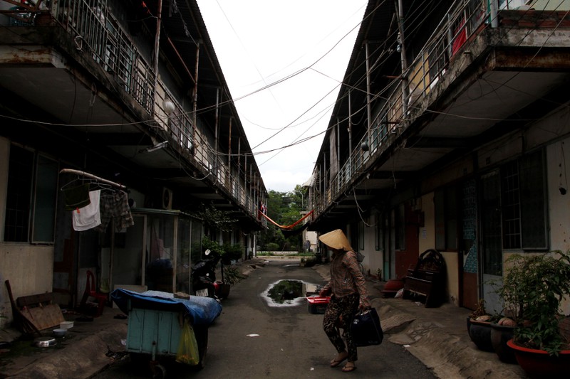Không gian chật chội, ẩm thấp trong một căn hộ tạm cư. |