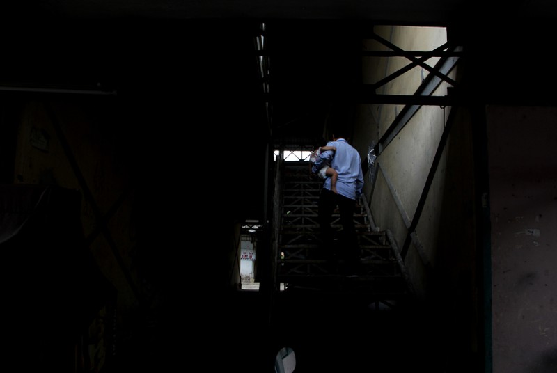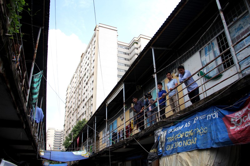 Lối lên tầng 2 của khu tạm cư khá ọp ép và tối. Tại đây nhiều người đã chuyển đi nơi khác hoặc lên khu tái định cư, tuy nhiên nhiều người dân cho biết, họ sẽ tiếp tục "bám trụ" cho đến khi thành phố giải quyết "thỏa đáng". |