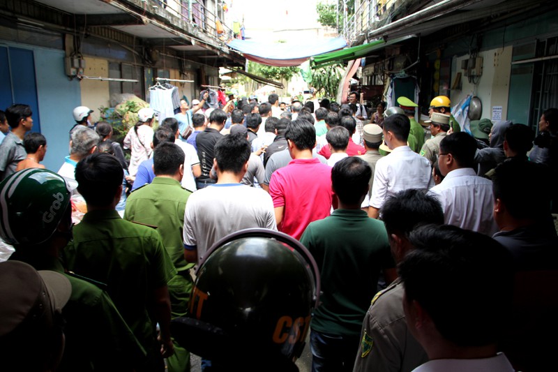 Biết được lịch trình, hàng trăm người dân đã tập trung tại đây để được gặp người đứng đầu thành ủy. Họ mang theo nhiều hồ sơ, tài liệu phản ánh sự việc của mình. Tại đây có một số cán bộ quận 2 từng tham gia cưỡng chế nên nhiều người đã chạy tới chất vấn. Sự việc mỗi lúc một gay gắt khiến những cán bộ này phải lánh mặt và cần lực lượng an ninh can thiệp. |