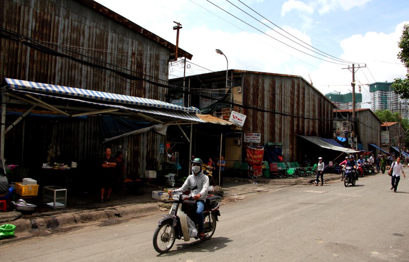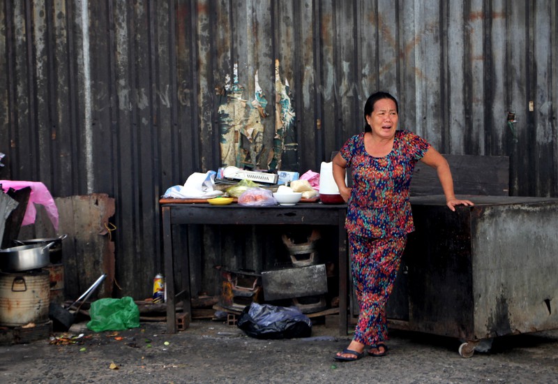 Nhiều hộ dân tại khu tạm cư đang sống bằng những gánh hàng rong, hay tiệm ăn nhỏ bày bán hủ tiếu, đồ ăn vặt trên vỉa hè. |