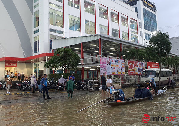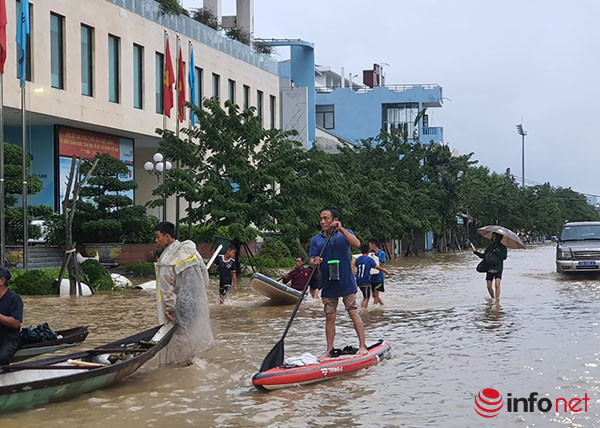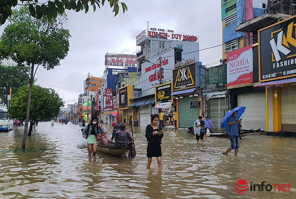 Ghi nhận của PV Infonet vào chiều nay (15/10), tại các tuyến đường trung tâm TP Huế, nhiều người đi lại mua nhu yếu phẩm tại các cửa hàng tạp hóa, chợ, siêu thị… đều phải di chuyển bằng ghe đò tại các chợ hoặc siêu thị.
