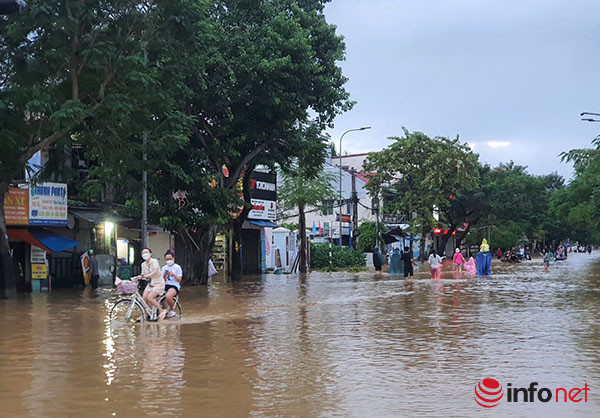 Mưa lớn trong ngày 14/10 cộng với việc các hồ thủy điện chứa nước điều tiết nước về hạ du khiến nhiều vùng ở tỉnh Thừa Thiên Huế bị ngập lụt nặng.